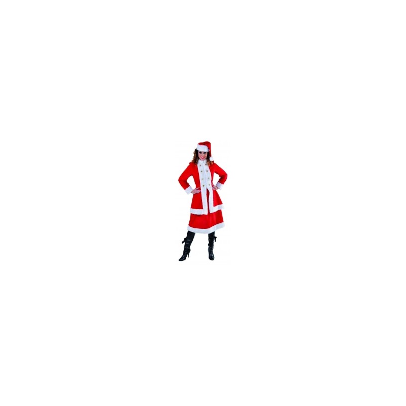Déguisement de mère noel comprenant la jupe,la longue veste et le chapeau.