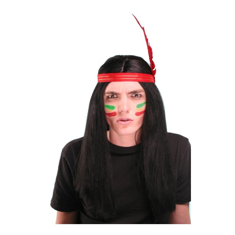 Perruque d'indien avec bandeau et plume,idéal pour vos soirées ou carnavals.